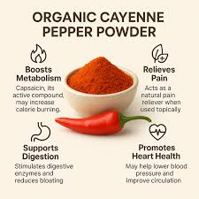 Digestive Health: Cayenne pepper may have digestive benefits. It can stimulate saliva production and gastric juices, promoting better digestion. Some people use cayenne pepper to help alleviate indigestion and bloating.